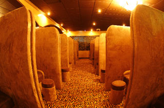 Each booth is unusually large and comfortable. Lights were turned up for photo. |